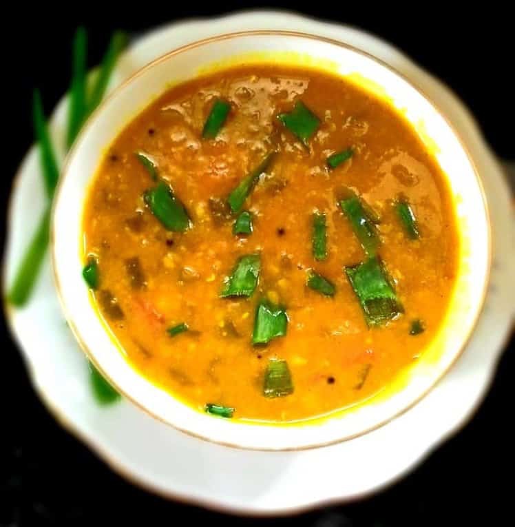It does not require a lot of time to prepare and it tastes super delicious too. Spring onion dal can be made by using any lentils or, dal or, mixed dal. Spring onions gives this dal a very nice flavor. It tastes really great along with white rice and also with side dishes. This dal can also be served along with roti as well.